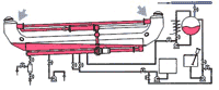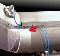 Inclinação da máquina regulável por sistema pneumático que permite otimizar a proporção de banho/tecido. (veja animação , clique aqui . )
